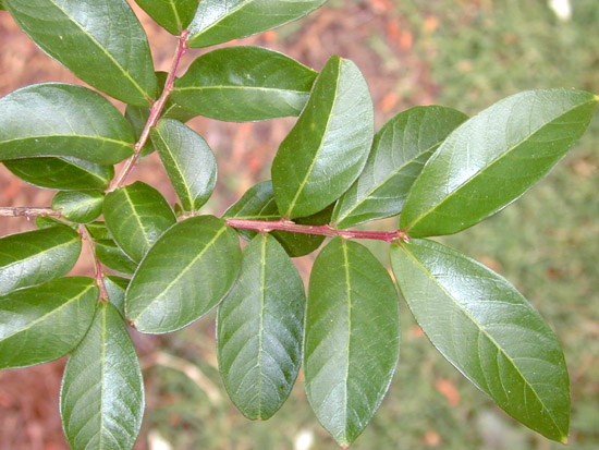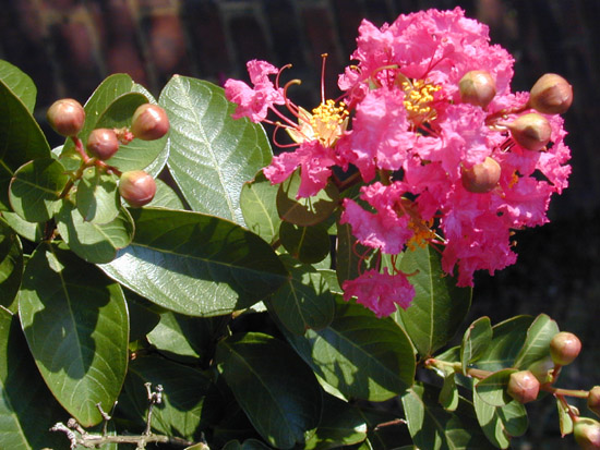 Voucher: Kostadinov 042, (URV) Brief description: A glabrous, deciduous shrub to 6 m; the bark is characteristically smooth, reddish-brown. Leaves are sessile to short-petioled, elliptic or oblong, simple, opposite(sometimes the upper ones alternate), entire, pinnately veined, pubescent on veins beneath, margins entire. Flowers are perfect, pink, white or purple, in panicles. Fruits are a woody, oblong, dehiscent capsule. Campus data: Very frequently cultivated everywhere on campus. |